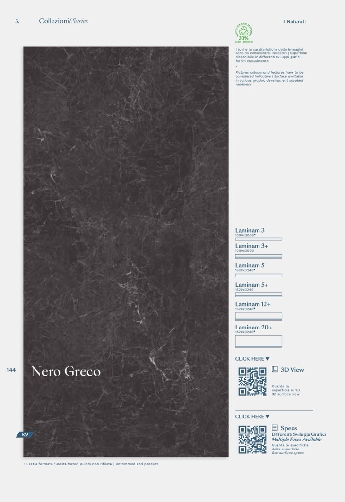 • Lastra formato “uscita forno” quindi non rifilata | Untrimmed end product