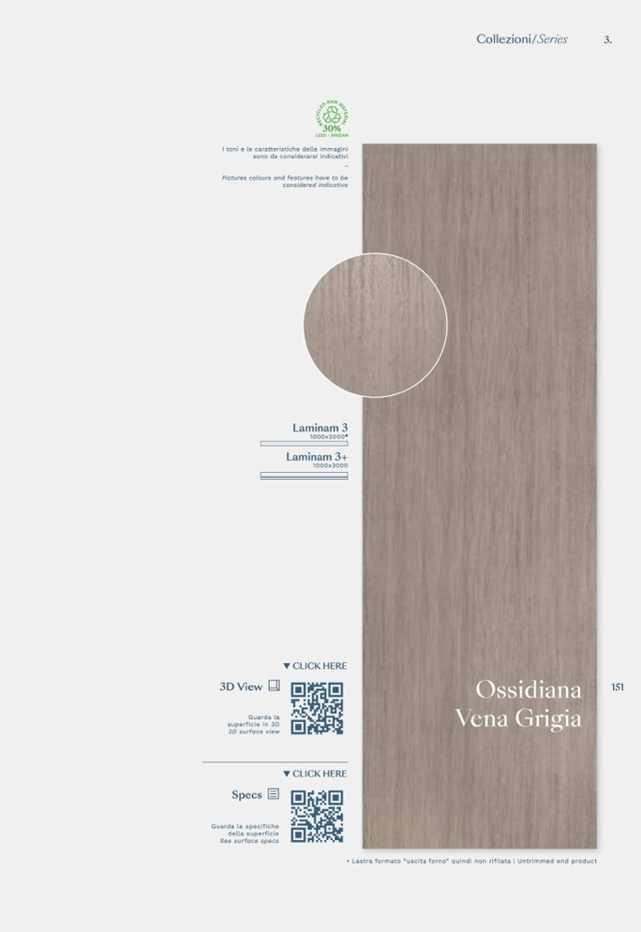• Lastra formato “uscita forno” quindi non rifilata | Untrimmed end product
