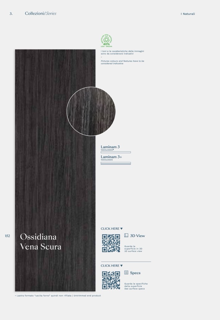 • Lastra formato “uscita forno” quindi non rifilata | Untrimmed end product