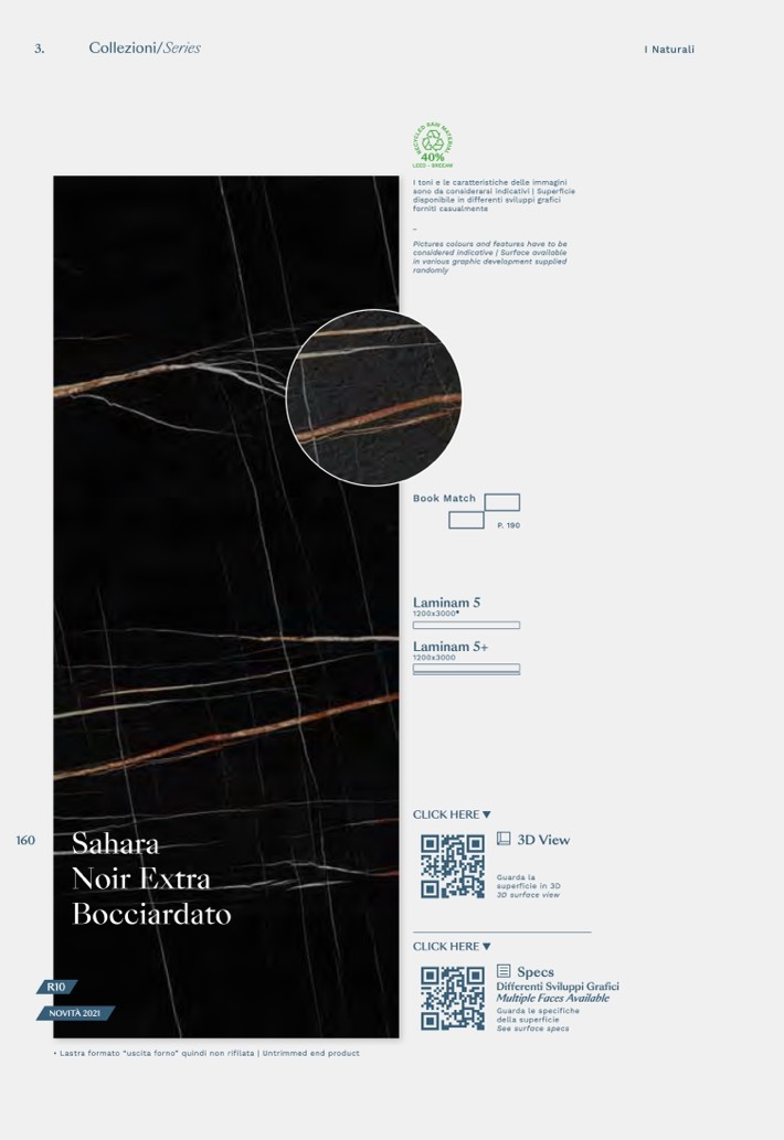 • Lastra formato “uscita forno” quindi non rifilata | Untrimmed end product