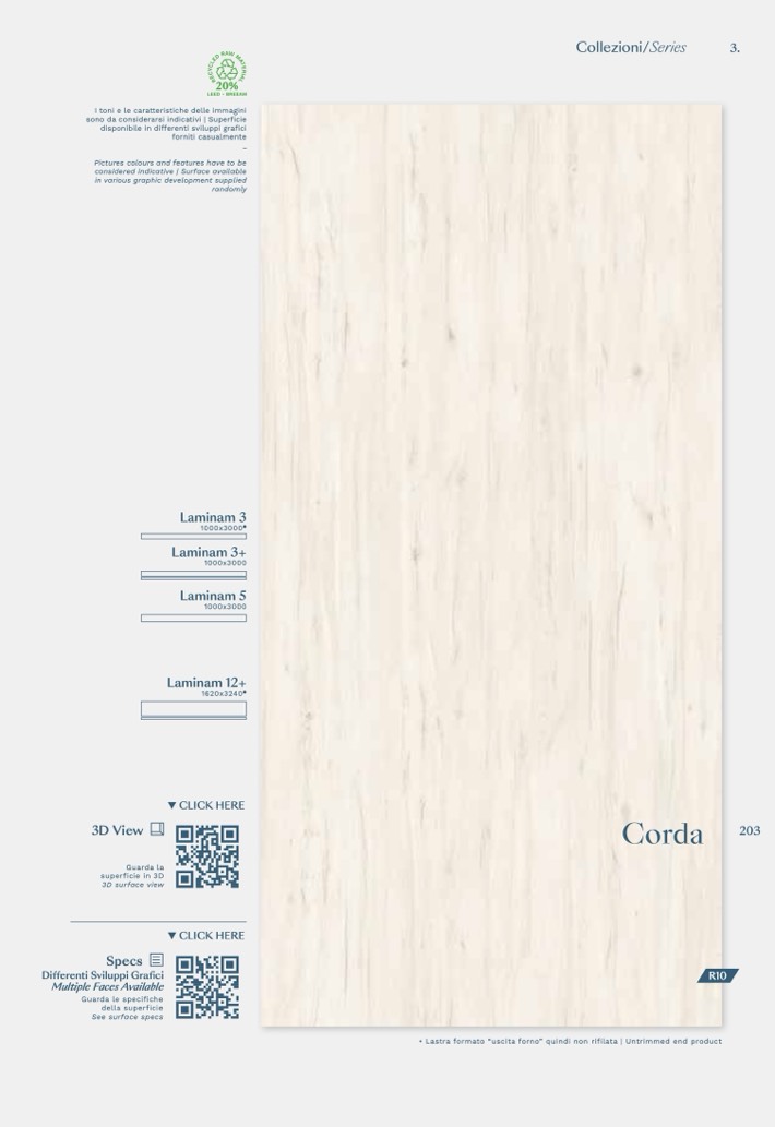 • Lastra formato “uscita forno” quindi non rifilata | Untrimmed end product