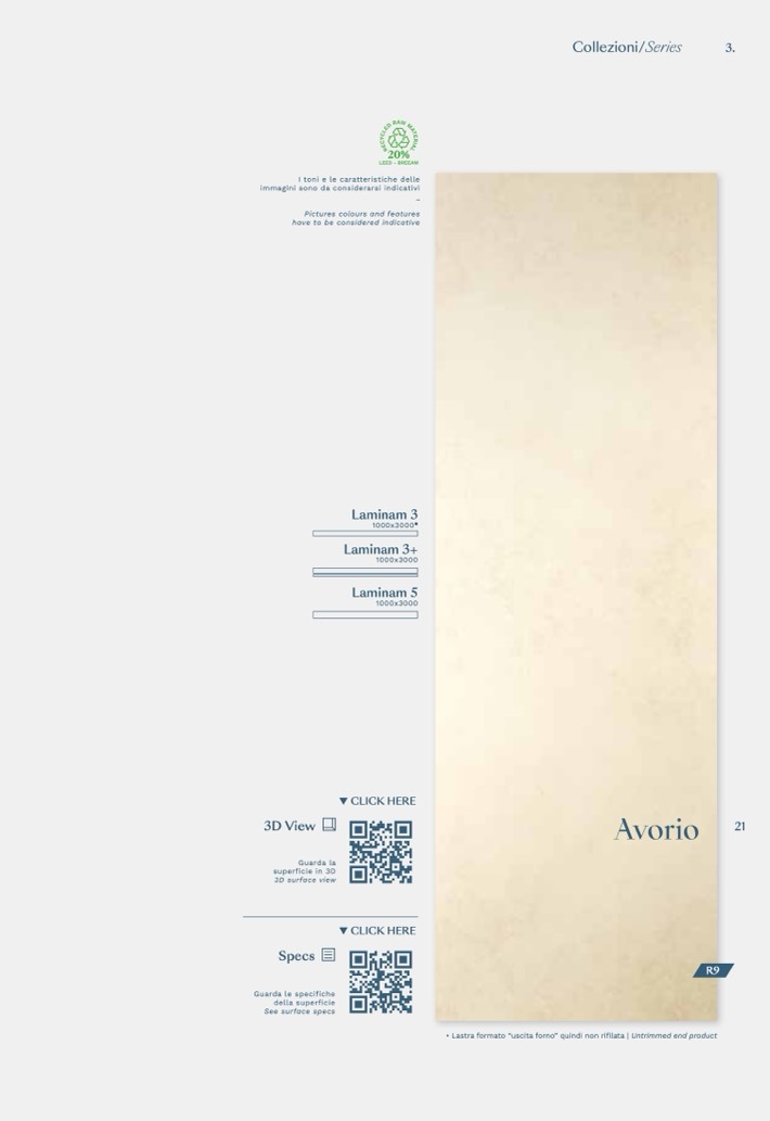 • Lastra formato “uscita forno” quindi non rifilata | Untrimmed end product