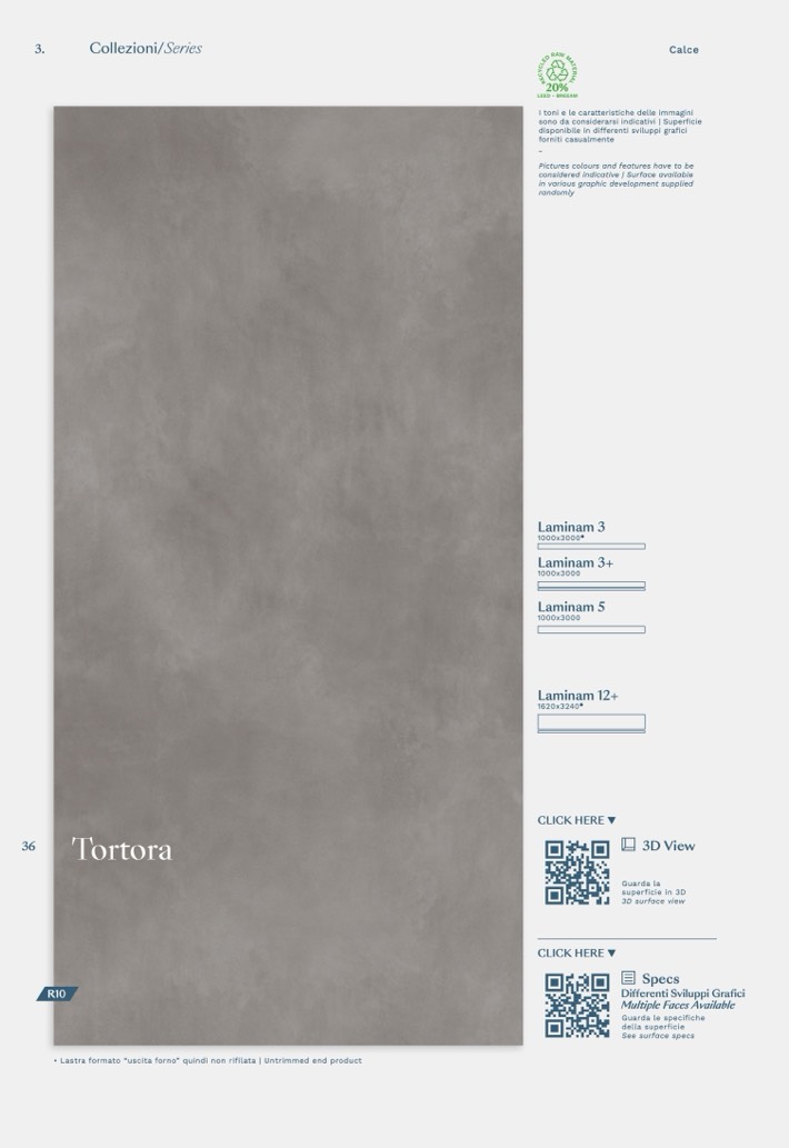 • Lastra formato “uscita forno” quindi non rifilata | Untrimmed end product