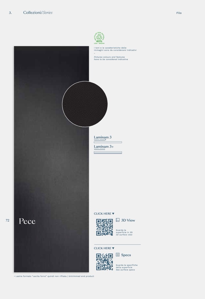 • Lastra formato “uscita forno” quindi non rifilata | Untrimmed end product