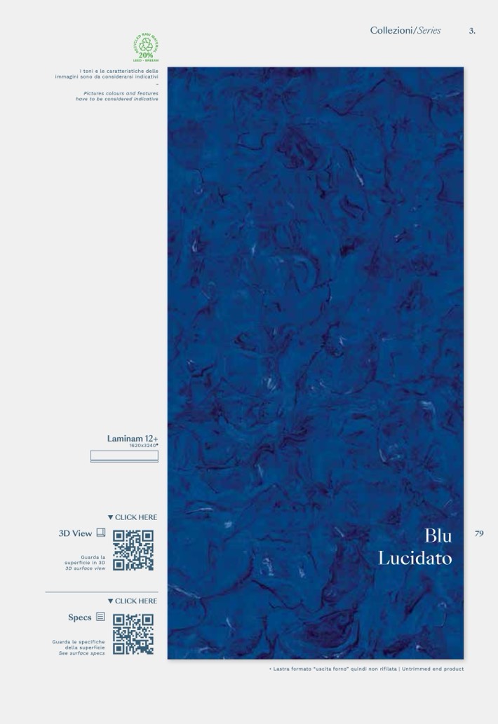 • Lastra formato “uscita forno” quindi non rifilata | Untrimmed end product