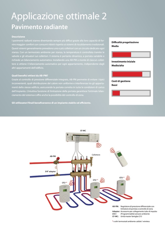valvole e gli attuatori sui collettori. Il sistema è pertanto dinamico, a portata variabile e
