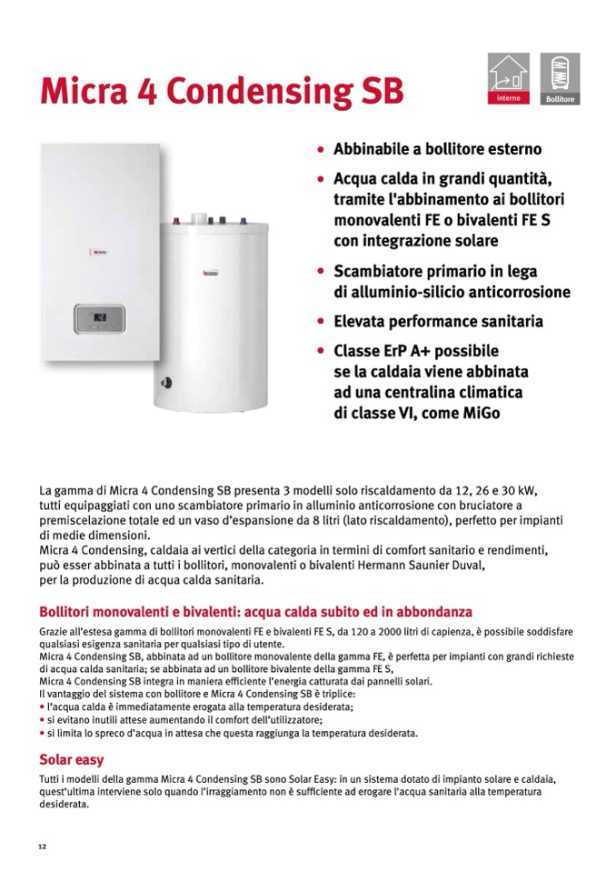 Tutti i modelli della gamma Micra 4 Condensing SB sono Solar Easy: in un sistema dotato di impianto solare e caldaia,