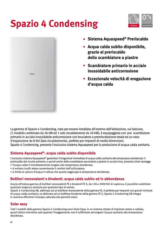 di acqua calda sanitaria; se abbinata ad un bollitore bivalente della gamma FE S, Spazio 4 Condensing SB integra