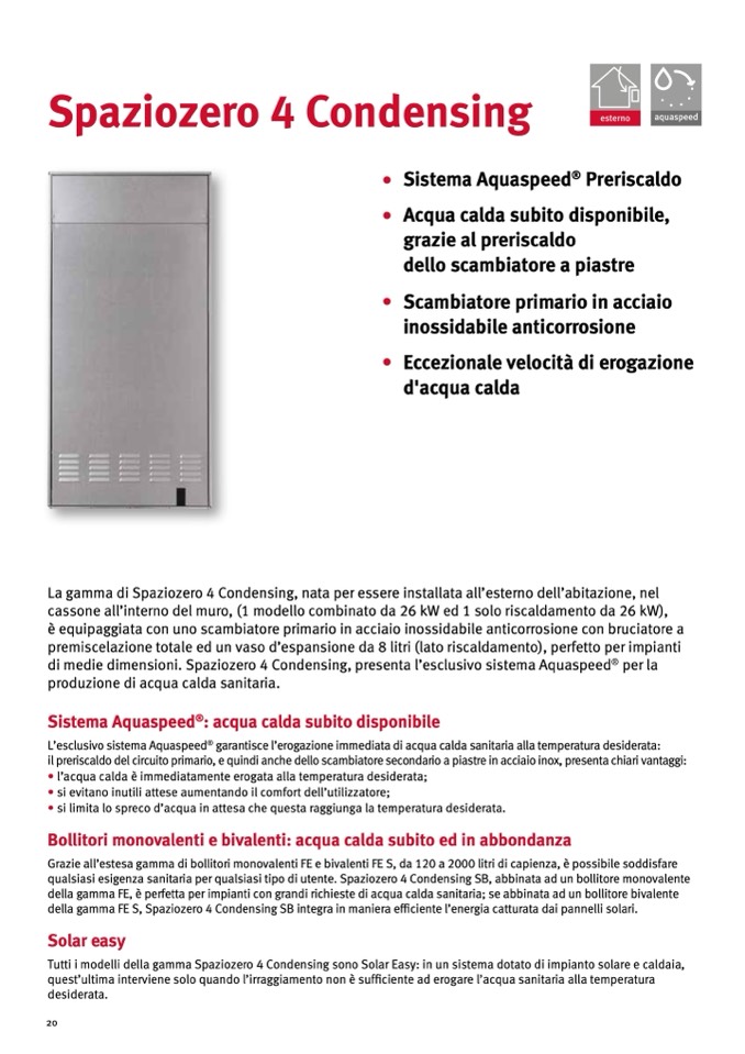 Tutti i modelli della gamma Spaziozero 4 Condensing sono Solar Easy: in un sistema dotato di impianto solare e caldaia,