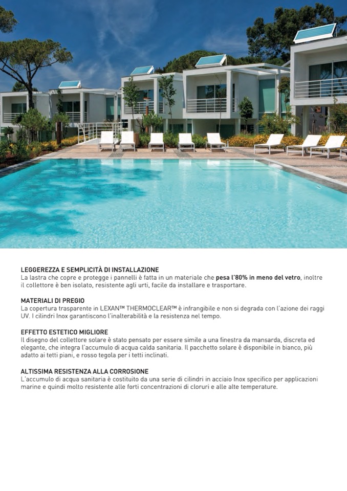 elegante, che integra l’accumulo di acqua calda sanitaria. Il pacchetto solare è disponibile in bianco, più