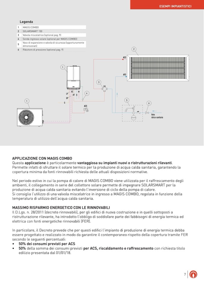 Si consiglia l’utilizzo di una valvola miscelatrice in ingresso a MAGIS COMBO, regolata in funzione della