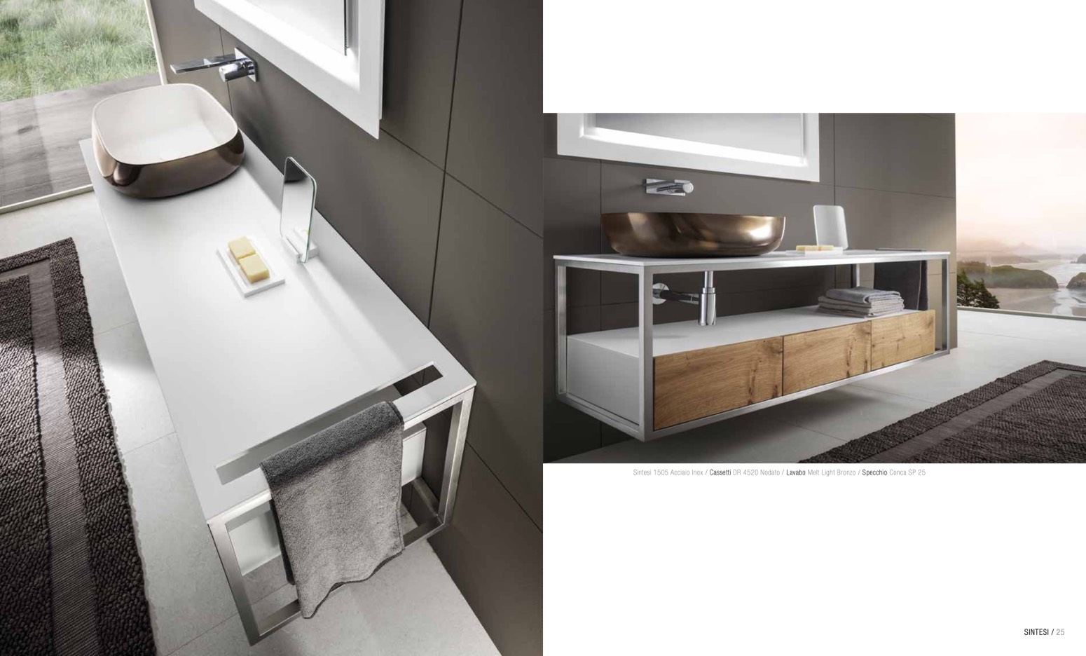 Sintesi 1505 Acciaio Inox / Cassetti DR 4520 Nodato / Lavabo Melt Light Bronzo / Specchio Conca SP 25