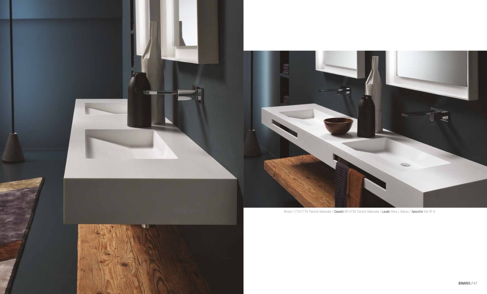 Binario 1770/1770 Tranché Sbiancato / Cassetti DR 5730 Tranché Sbiancato / Lavabi Sfera L Bianco / Specchio Elle SP 9