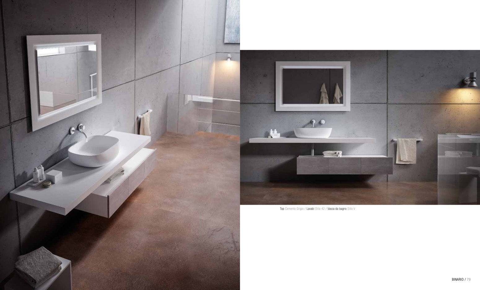 Top Cemento Grigio / Lavabi Stilo 42 / Vasca da bagno Stilo V