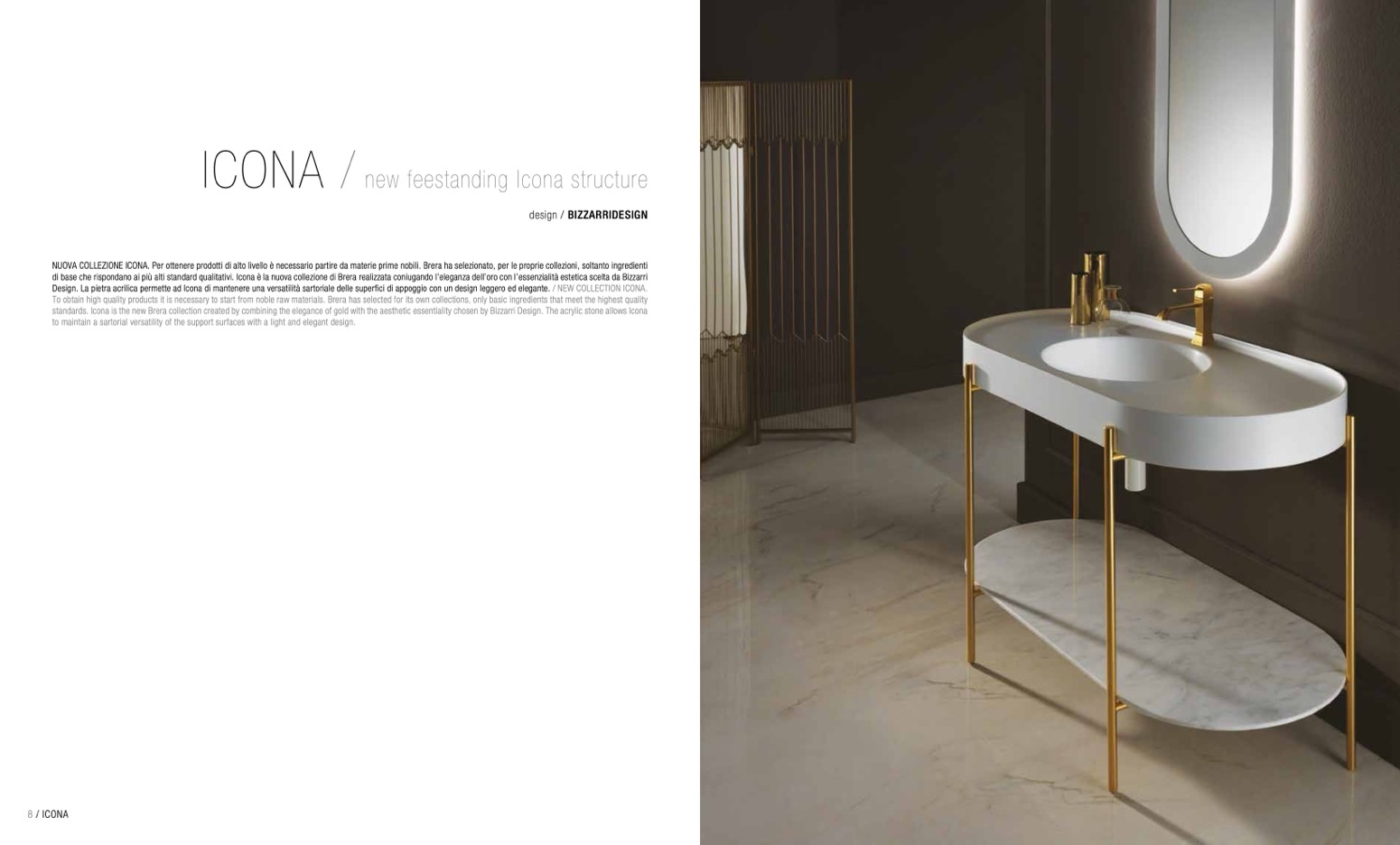 standards. Icona is the new Brera collection created by combining the elegance of gold with the aesthetic essentiality chosen by Bizzarri Design. The acrylic stone allows Icona