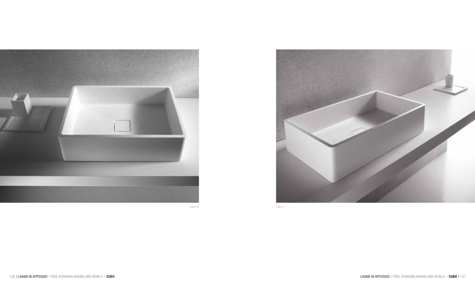 136 / LAVABI IN APPOGGIO / FREE STANDING BASINS AND BOWLS • CUBO