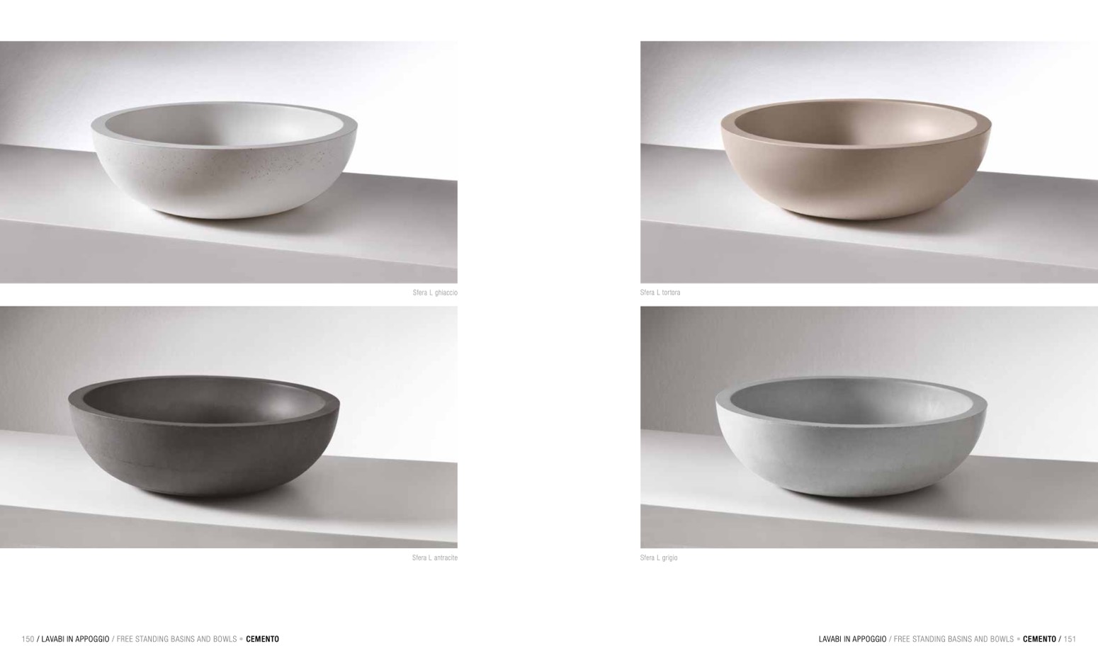 150 / LAVABI IN APPOGGIO / FREE STANDING BASINS AND BOWLS • CEMENTO