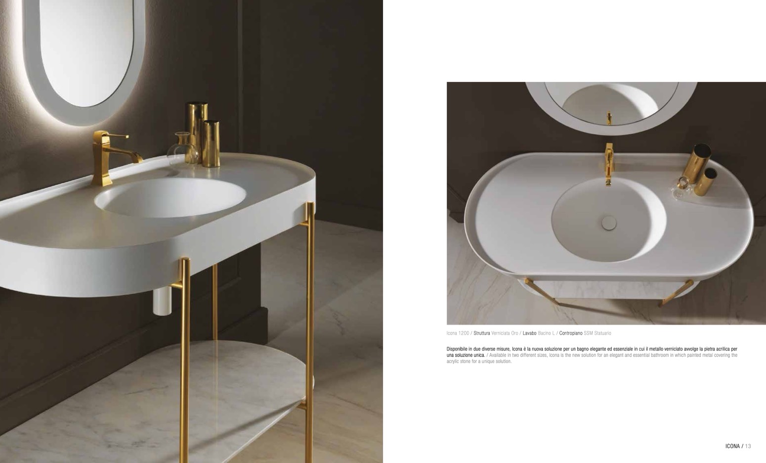 una soluzione unica. / Available in two different sizes, Icona is the new solution for an elegant and essential bathroom in which painted metal covering the