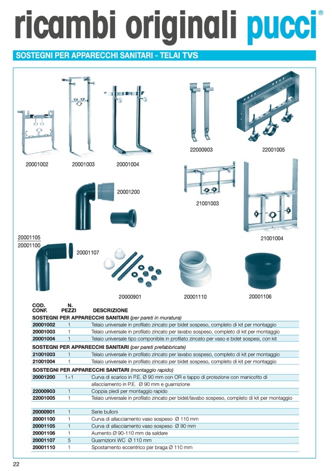 SOSTEGNI PER APPARECCHI SANITARI (montaggio rapido)