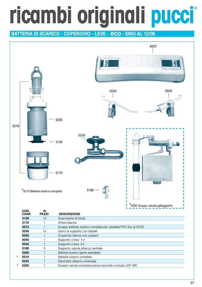 Gruppo batteria scarico completa per cassetta PVC fino al 02/93