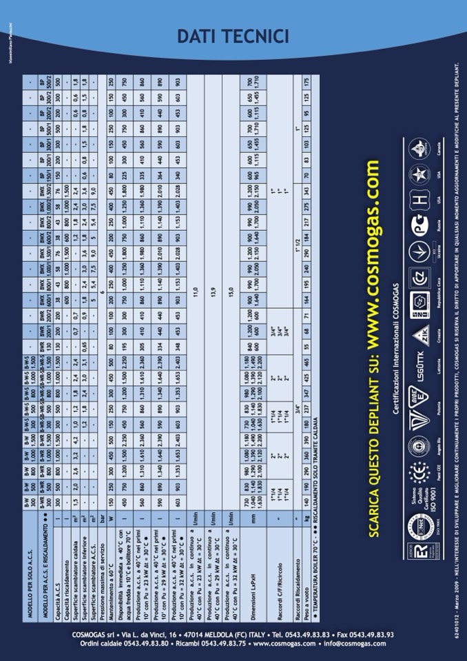 Ordini caldaie 0543.49.83.80 • Ricambi 0543.49.83.75 • www.cosmogas.com • info@cosmogas.com