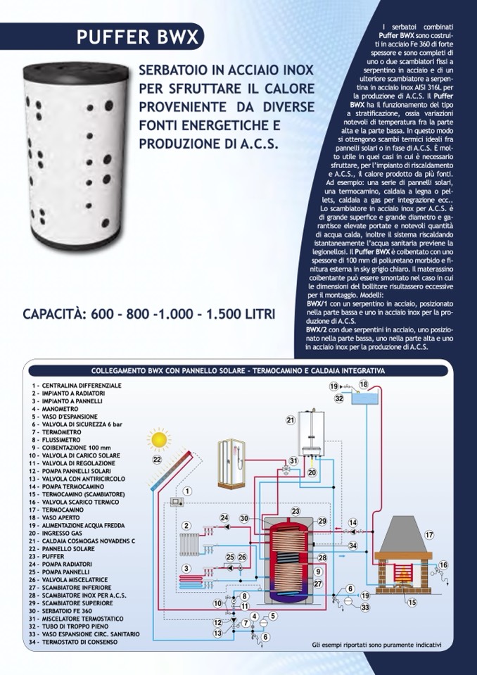 COLLEGAMENTO BWX CON PANNELLO SOLARE - TERMOCAMINO E CALDAIA INTEGRATIVA