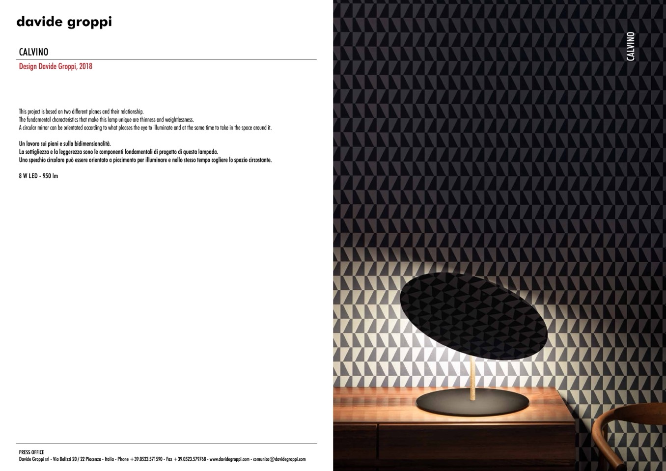 Davide Groppi srl - Via Belizzi 20 / 22 Piacenza - Italia - Phone +39.0523.571590 - Fax +39.0523.579768 - www.davidegroppi.com - comunica@davidegroppi.com