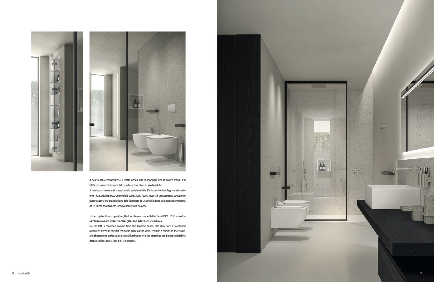 H267 cm in alluminio verniciato e vetro extrachiaro e i sanitari Artex.