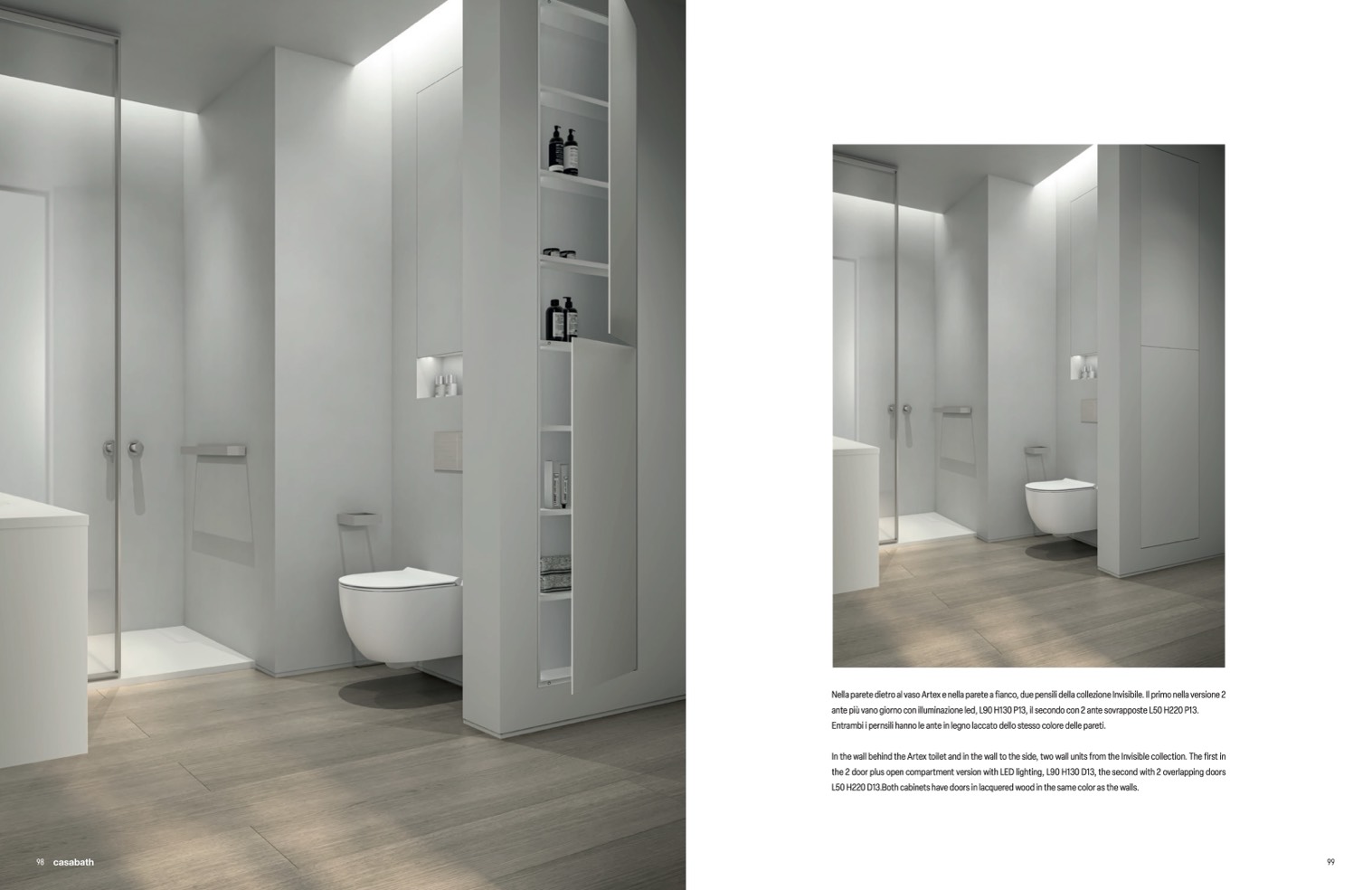 In the wall behind the Artex toilet and in the wall to the side, two wall units from the Invisible collection. The first in