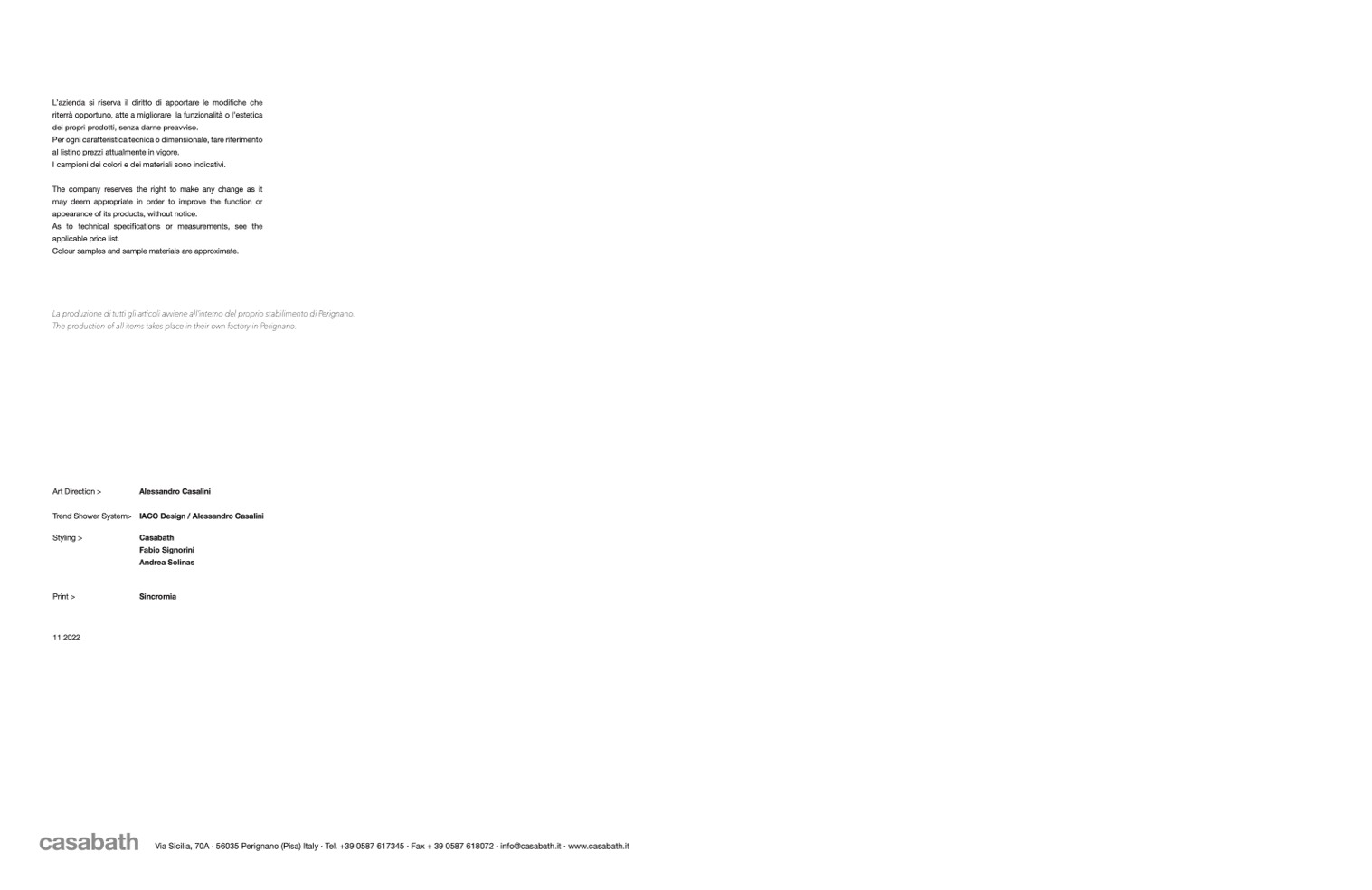Via Sicilia, 70A · 56035 Perignano (Pisa) Italy · Tel. +39 0587 617345 · Fax + 39 0587 618072 · info@casabath.it · www.casabath.it