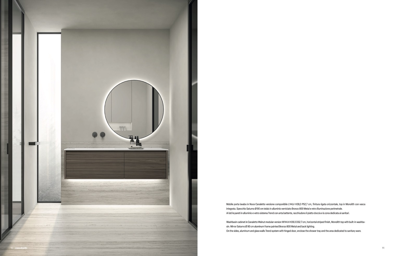 integrata. Specchio Saturno Ø 90 cm telaio in alluminio verniciato Bronzo 800 Metal e retro illuminazione perimetrale.