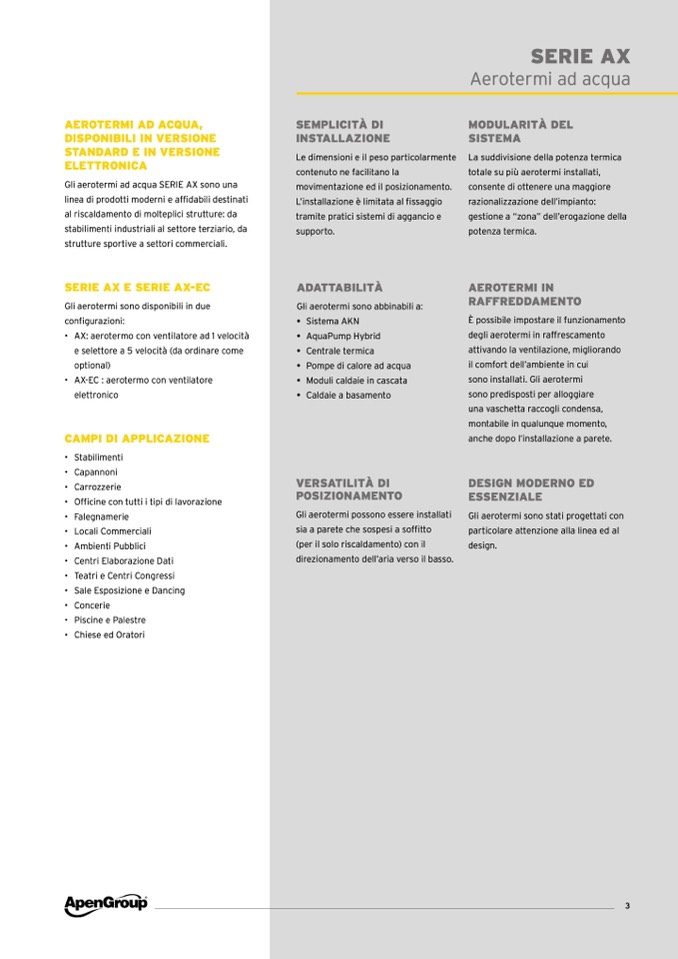 Gli aerotermi ad acqua SERIE AX sono una