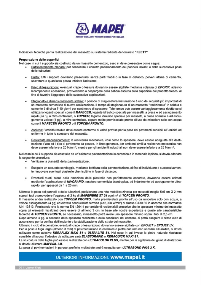 Indicazioni tecniche per la realizzazione del massetto su sistema radiante denominato “KLETT”
