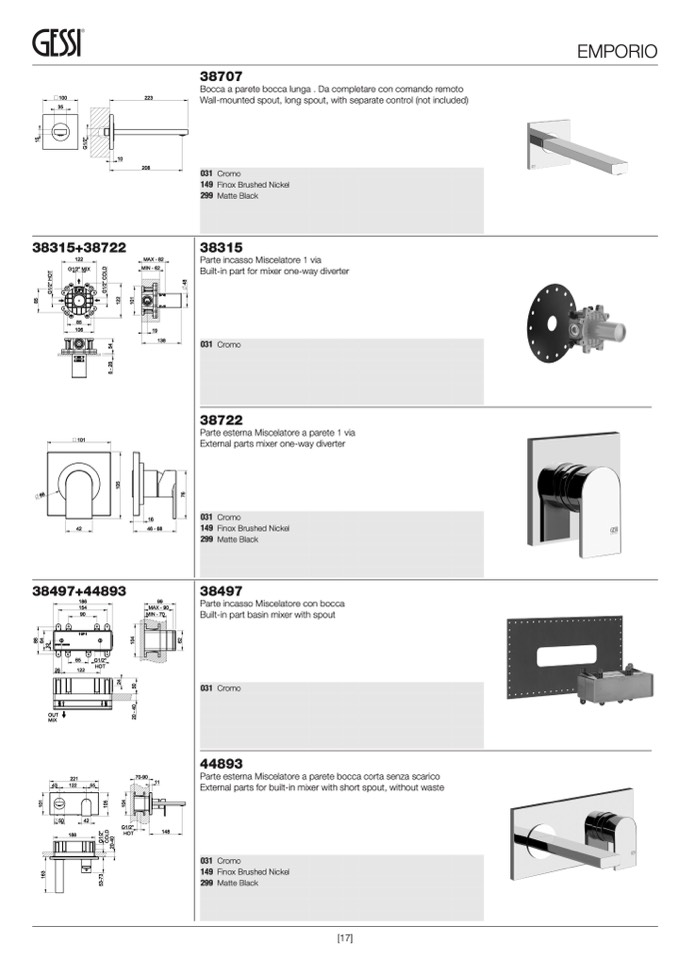 Parte esterna Miscelatore a parete 1 via