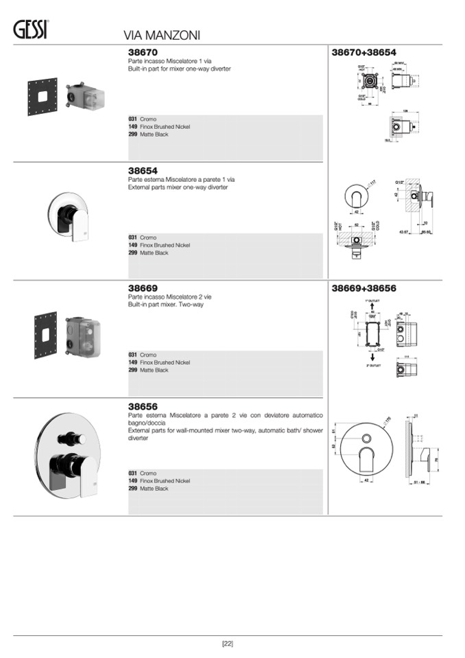 xternal parts for wall-mounted mixer two-way, automatic bath/ shower