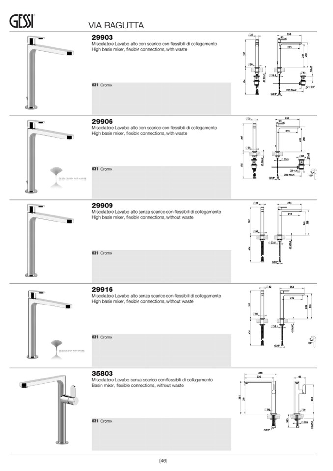 iscelatore Lavabo alto senza scarico con flessibili di collegamento