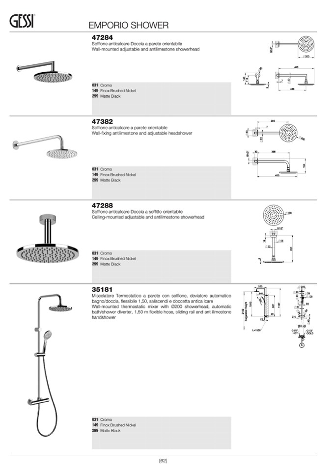 agno/doccia, flessibile 1,50, saliscendi e doccetta antica lcare