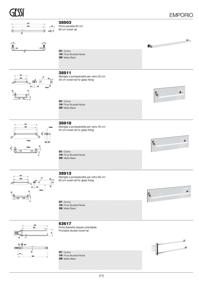 60 cm towel rail for glass fixing