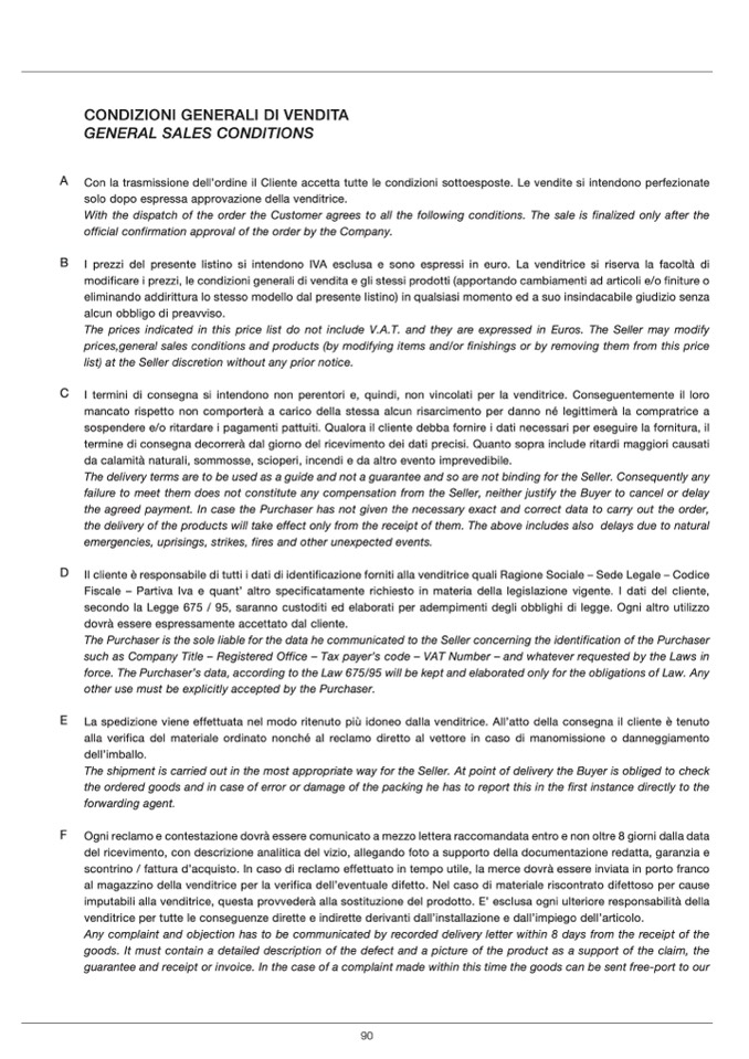 force. The Purchaser’s data, according to the Law 675/95 will be kept and elaborated only for the obligations of Law. Any
