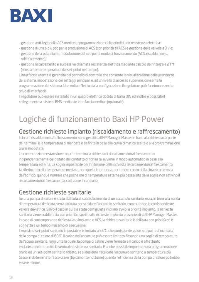 I circuiti riscaldamento/raffrescamento sono gestiti dall’HP Manager Master in base alla richiesta da parte