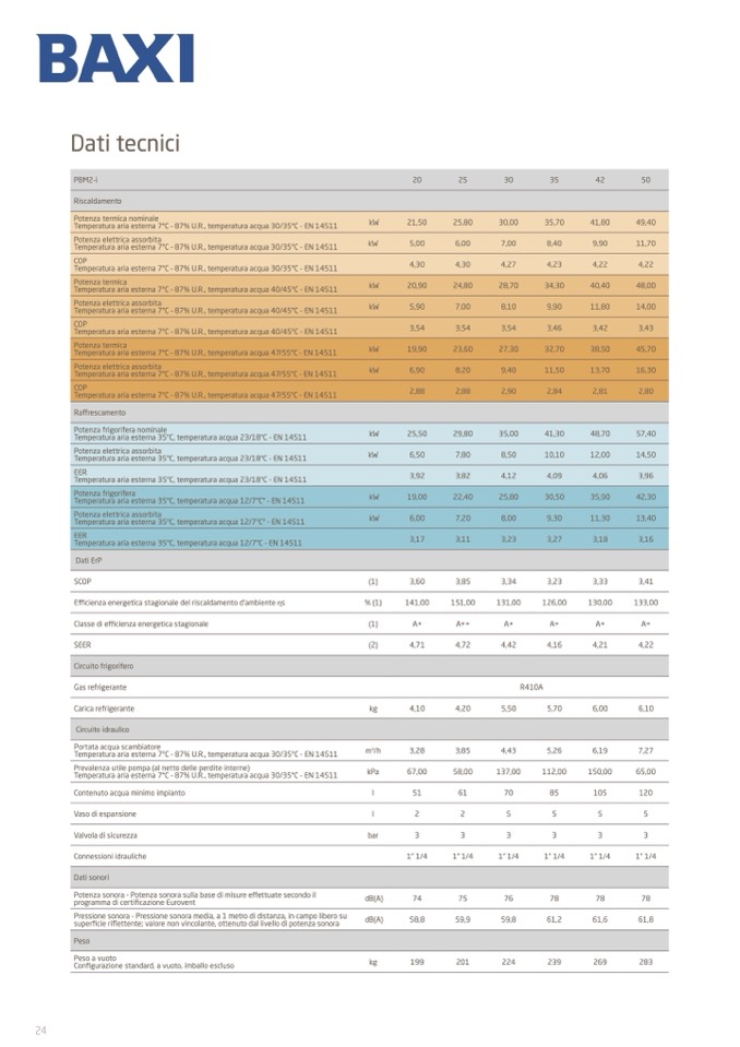 Temperatura aria esterna 7°C – 87% U.R., temperatura acqua 40/45°C - EN 14511