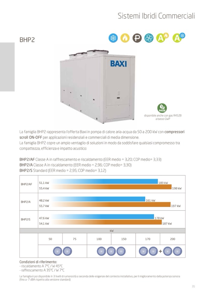 La famiglia BHP2 rappresenta l’offerta Baxi in pompa di calore aria-acqua da 50 a 200 kW con compressori