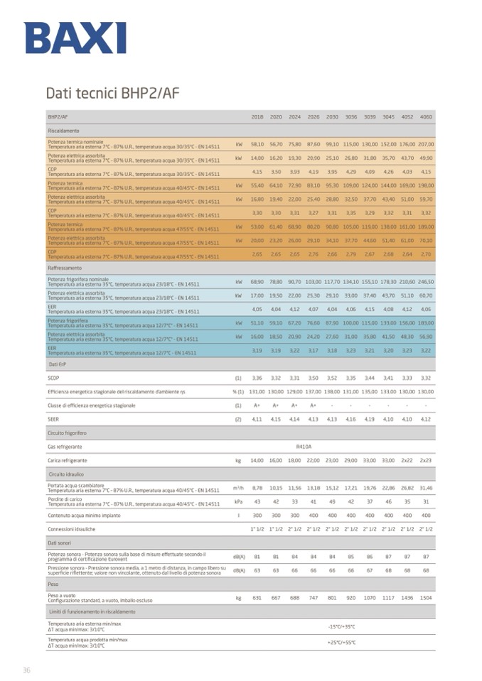 Temperatura aria esterna 7°C – 87% U.R., temperatura acqua 40/45°C - EN 14511