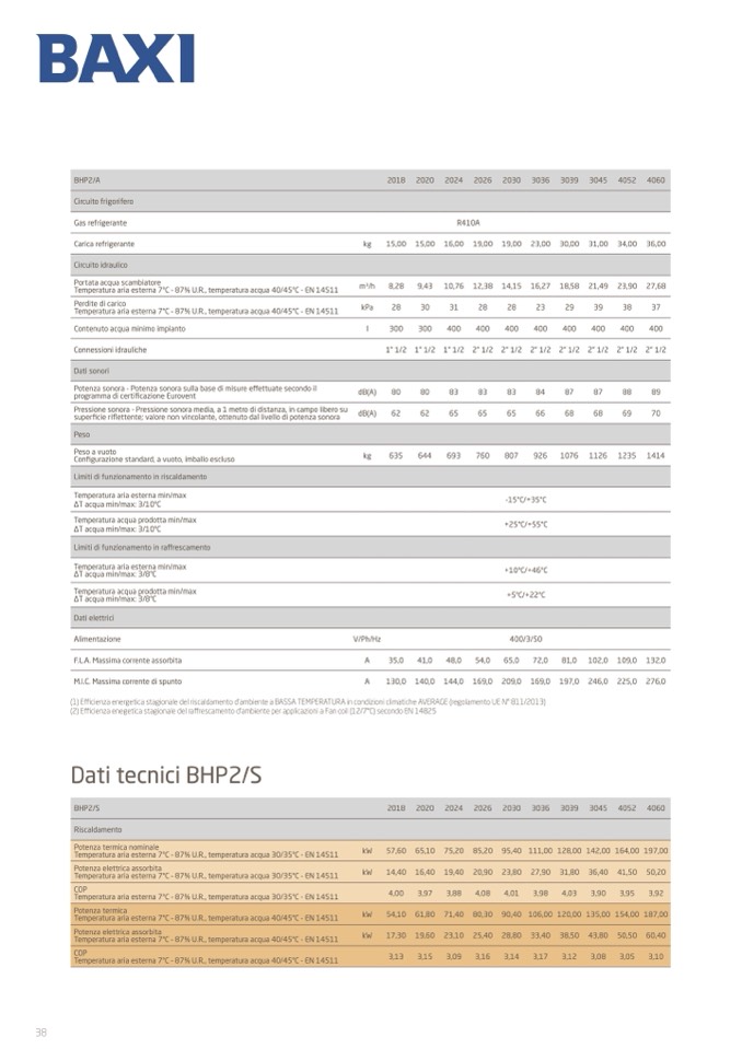 Temperatura aria esterna 7°C – 87% U.R., temperatura acqua 40/45°C - EN 14511