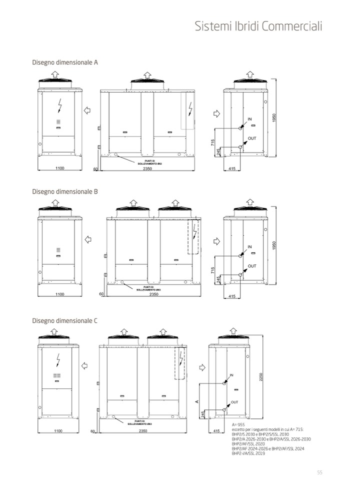 eccetto per i seguenti modelli in cui A= 715: