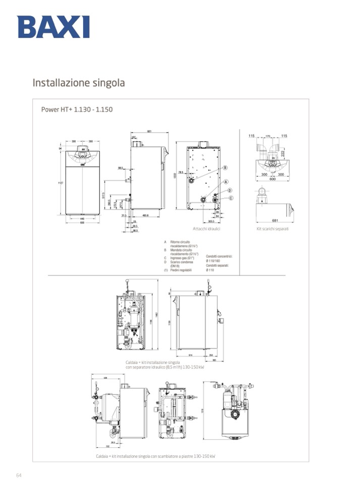 Caldaia + kit installazione singola con scambiatore a piastre 130-150 kW