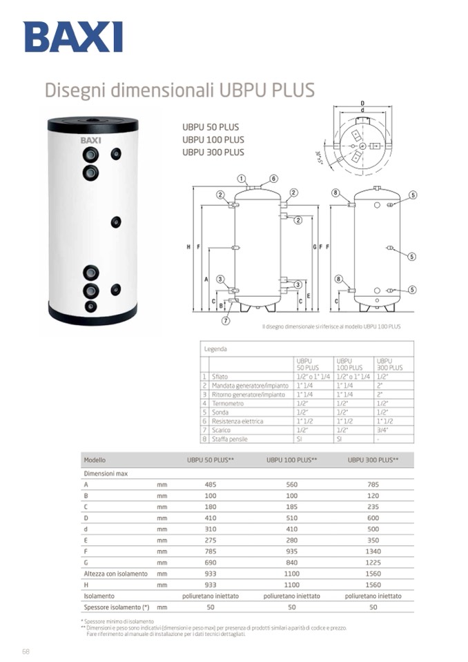 Il disegno dimensionale si riferisce al modello UBPU 100 PLUS