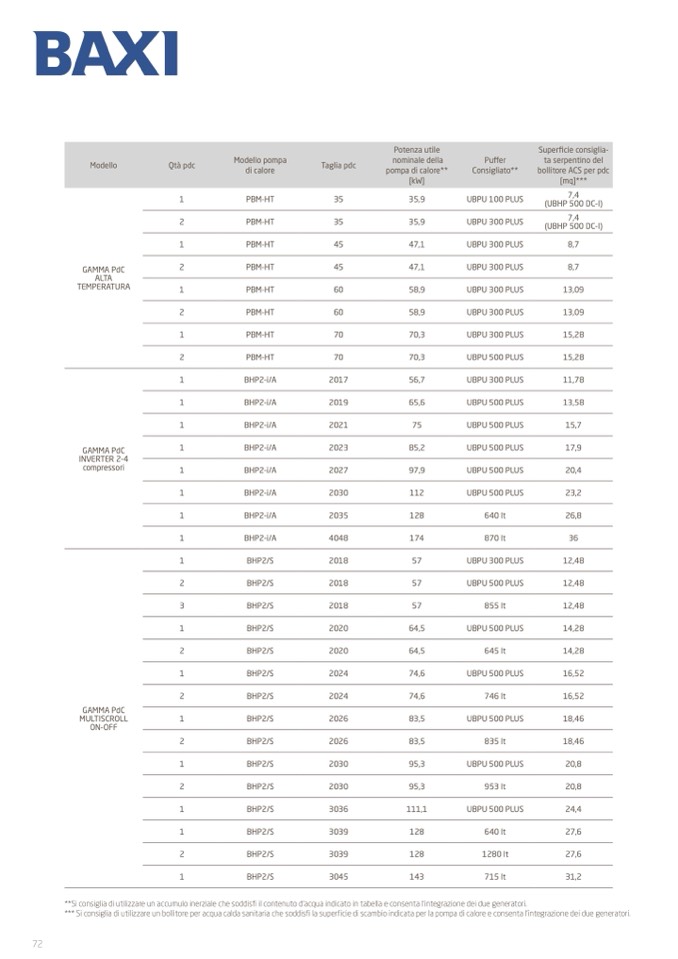 *** Si consiglia di utilizzare un bollitore per acqua calda sanitaria che soddisfi la superficie di scambio indicata per la pompa di calore e consenta l’integrazione dei due generatori.