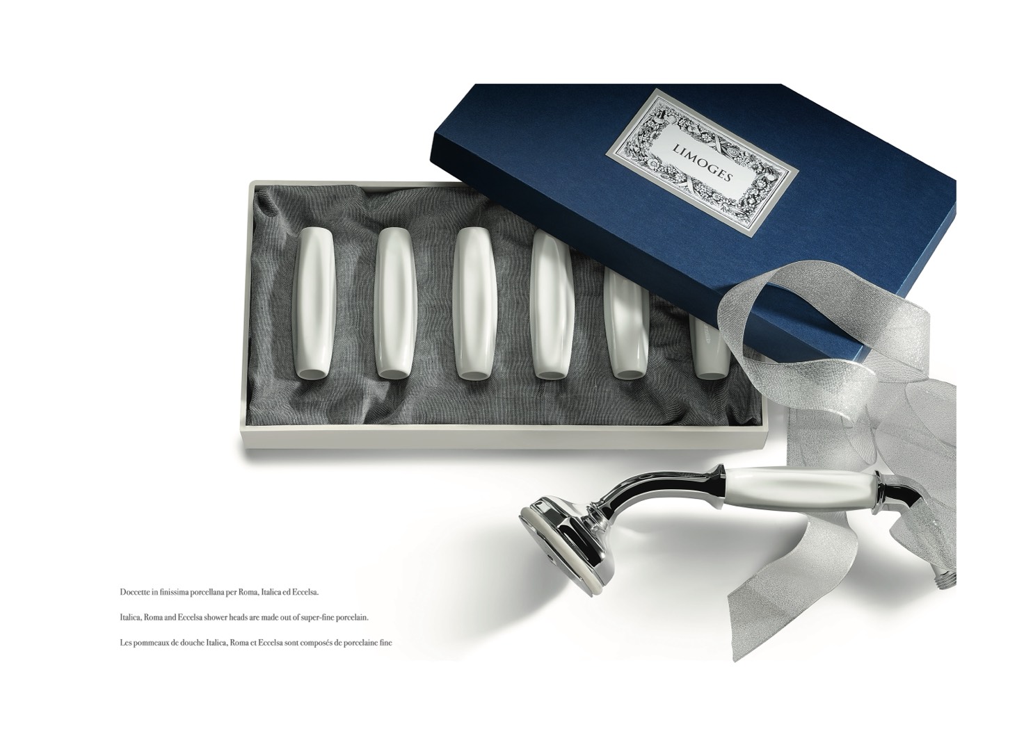 Les pommeaux de douche Italica, Roma et Eccelsa sont composés de porcelaine fine