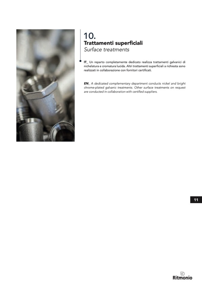 nichelatura e cromatura lucida. Altri trattamenti superficiali a richiesta sono